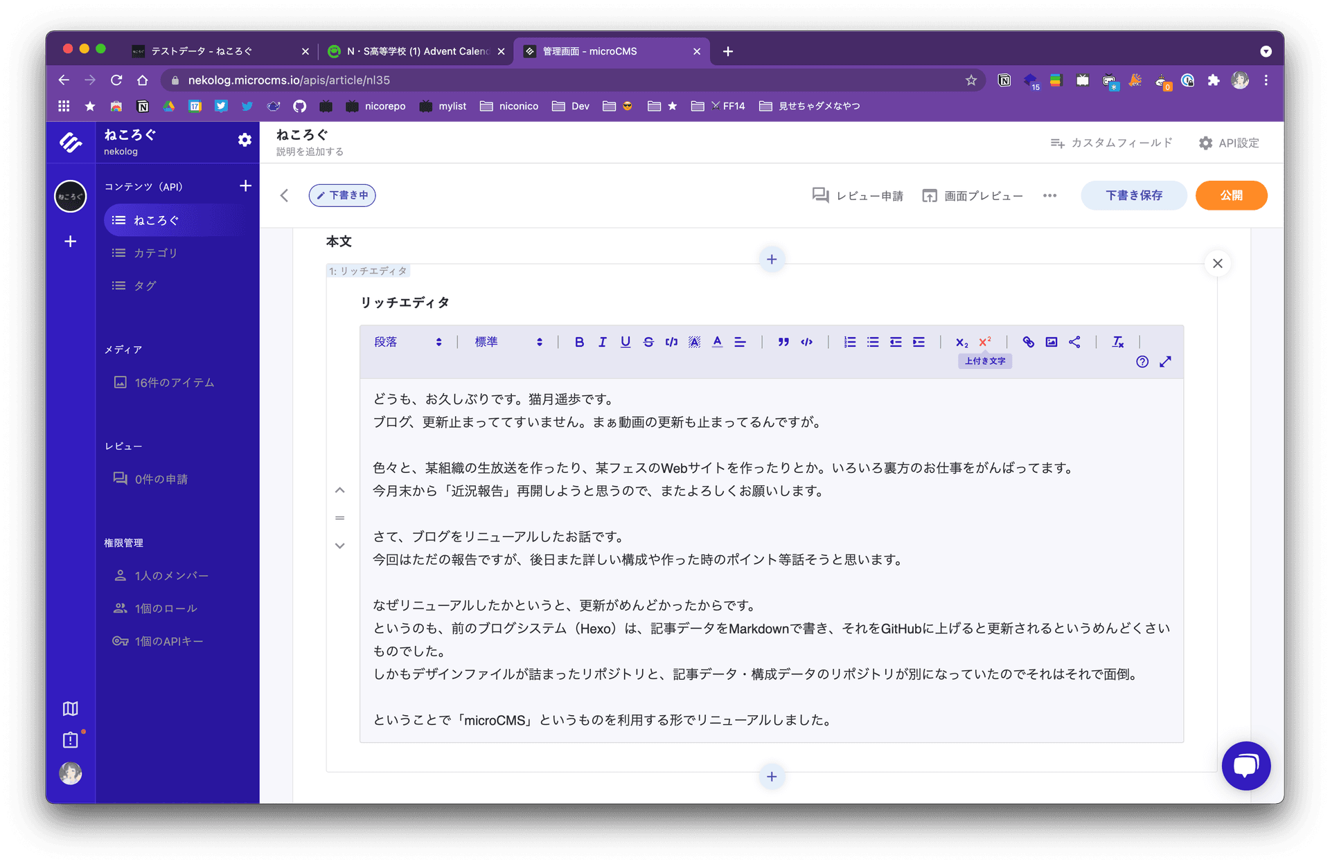 ということで「microCMS」というものを利用する形でリニューアルしました。