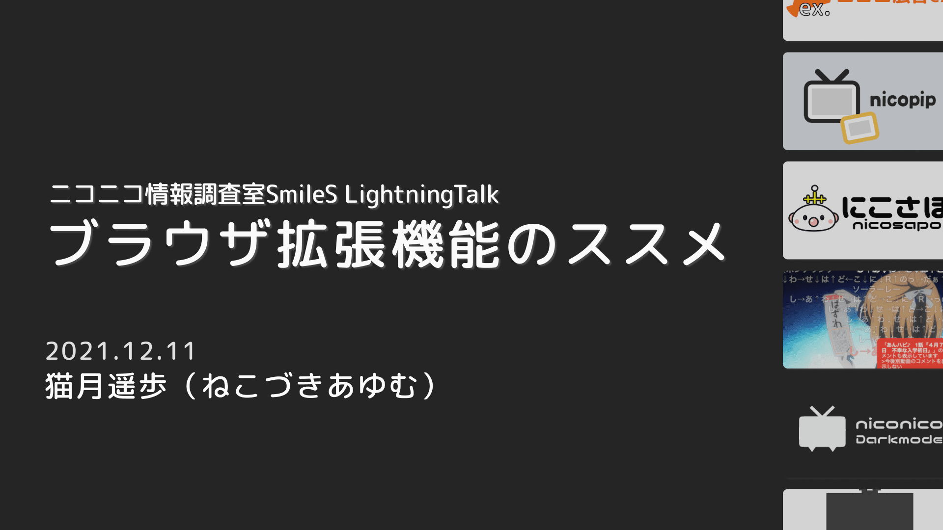 先日、ニコニコ情報調査室SmileS内 で 「テーマなしLT」企画があり、それに参加してきました。