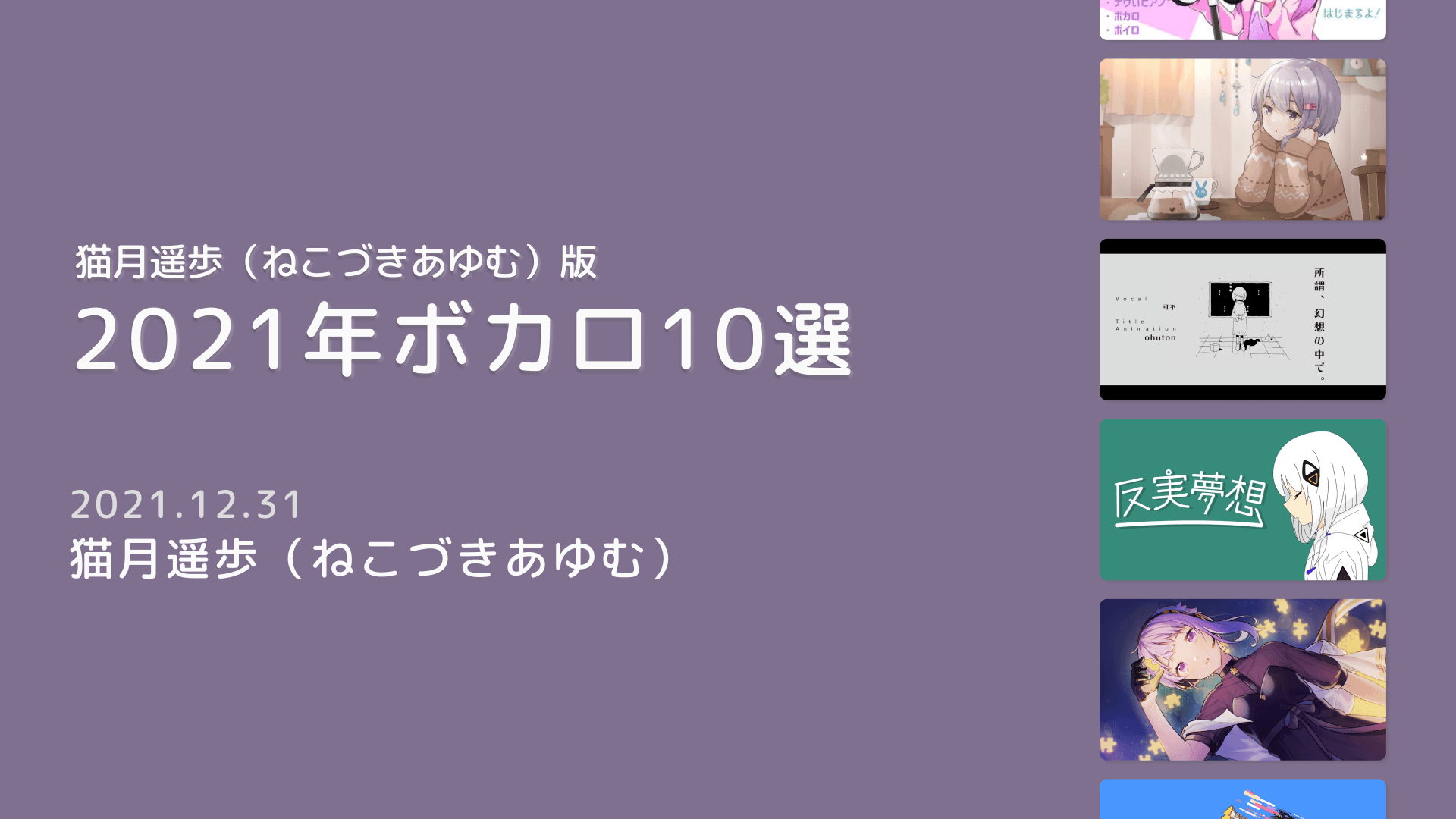 猫月遥歩の2021年のボカロ10選をご紹介します。
